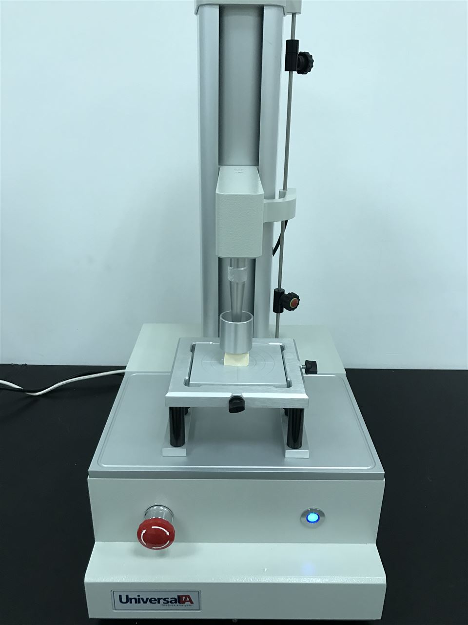 选取炸制均匀的油条,切除两端部分,将中间段切成厚度2cm的油条小块,平躺放于50mm柱形探头的正下方,测试条件设置如下