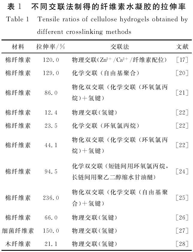 为了保证纤维素的稳定结构和有效溶胀,凝胶过程中,一般会加入化学交联剂促进三维网络的共