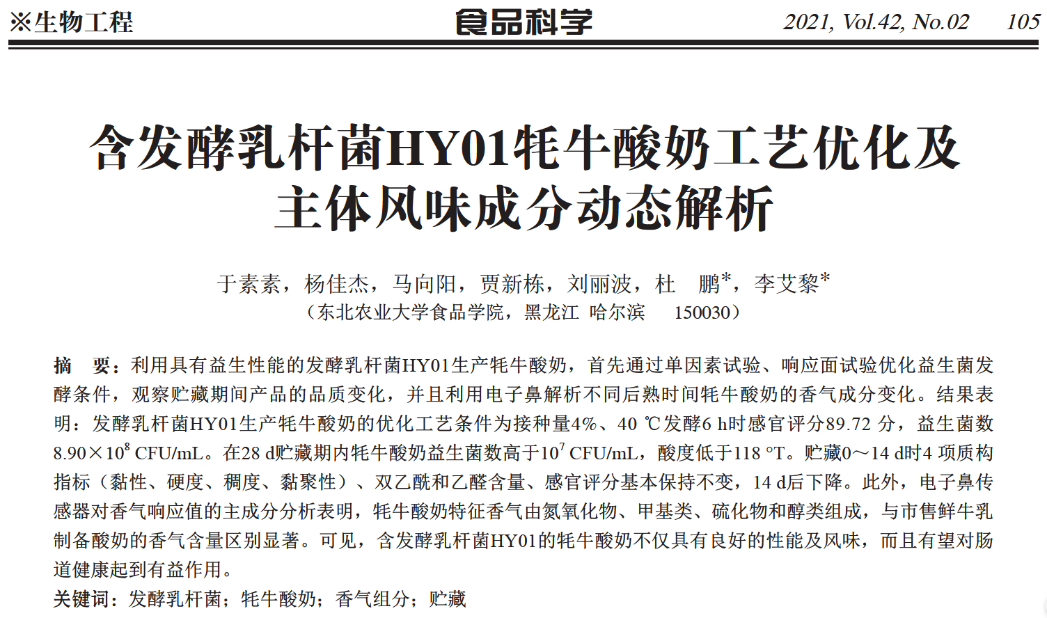 2021年,东北农业大学食品学院研究人员在国内食品期刊《食品科学》在线发表了题为“含发酵乳杆菌HY01牦牛酸奶工艺优化及主体风味成分动态解析”的研究文章。在该论文中,研究人员使用上海腾拔仪器科技有限公司的Universal TA质构仪来测定牦牛酸奶的硬度、稠度、内聚性和粘性指标。