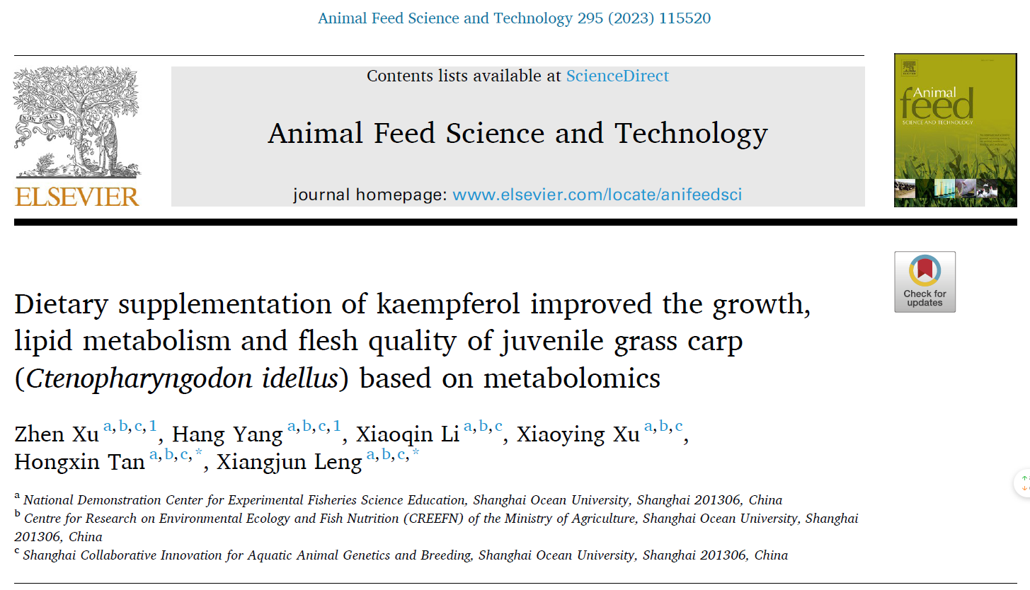 近日,上海腾拔Universal TA研究型质构仪助力上海海洋大学水产科学guojiaji实验教学示范中心研究人员在农林科学领域国际期刊《Animal Feed Science and Technology》(QI IF=3.313)发表了题为"Dietary supplementation of kaempferol improved the growth, lipid metabolism and flesh quality of juvenile grass carp (Ctenopharyngodon idellus) based on metabolomics"的研究论文。