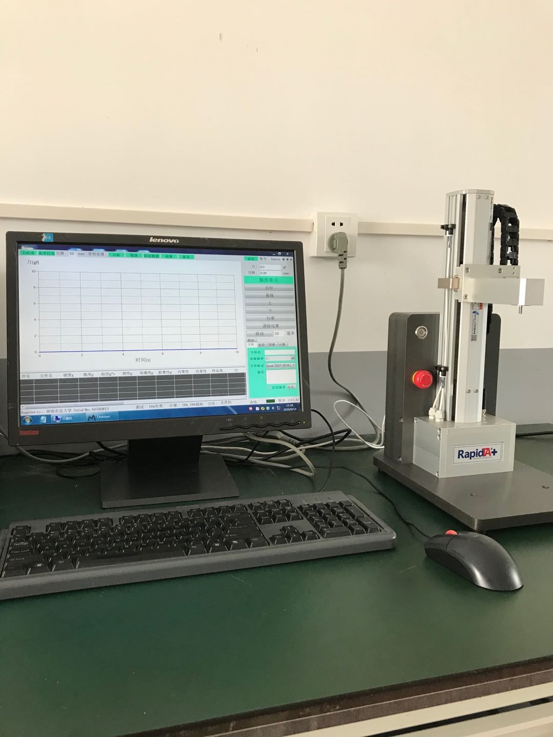 和湖南农业大学老师沟通后,2020年9月14日, 上海腾拔仪器科技有限公司售后工程师对学校购买的Rapid TA+专业型质构仪进行了安装、调试和培训。首先工程师对质构仪进行了安装并调试。调试合格后就仪器的构造及原理、软件的设置、探头的安装及应用、测试曲线和数据的处理和导出等对学校老师和同学进行了全面、专业而系统的培训。培训完成后,老师和同学们对仪器、软件和探头进行了上手操作,并在操作过程中遇到的一些疑问与工程师进行了交流沟通。后,老师和同学们对样品进行了测试和数据分析,对仪器的性能表示认可和满意。