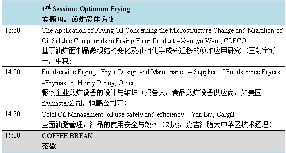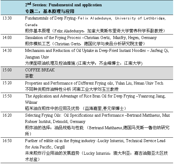 “煎炸油及煎炸食品研讨会”是欧洲油脂科技联盟发起的品牌会议,每两年举办一届。前八届会议在欧洲及北美洲举办,这是来到中国。